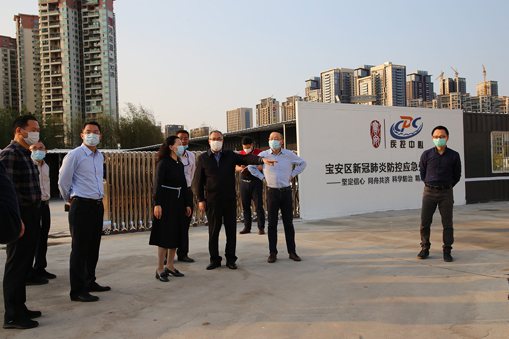 3 月 10 日下午,深圳市宝安区政府党组成员、副区长李懿一行莅临宝安区新冠肺炎防控应急处置中心指导疫情防控和项目建设工作。