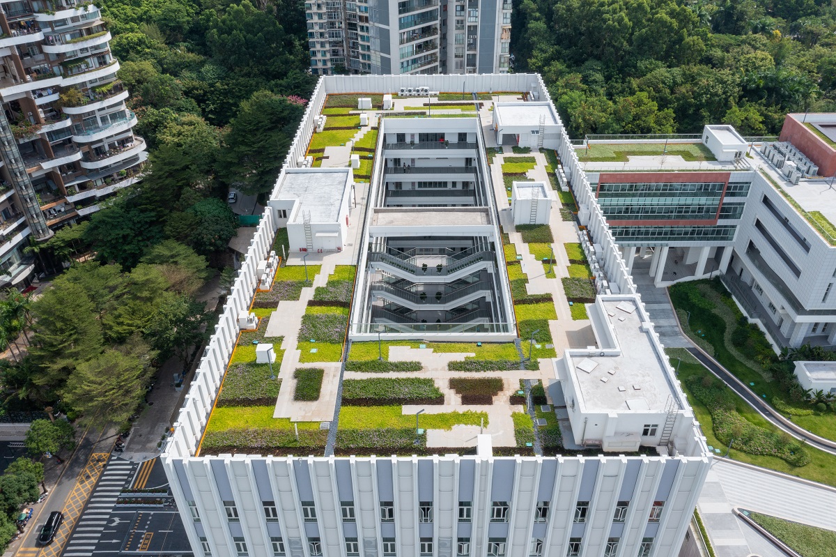 本项目位于深圳市福田区,景观绿化面积约3万平方米,作为深圳职业技术学院重要的校区改造项目,立意于“山、水、园、林”这一主旨,整体风格为“现代校园景观”。项目现状地形主要为山地,城市山海连廊借道校园,核心景观围绕山体逐层展开,让城市、山体和校园有机融合、生态共享。项目包括了户外景观,架空层景观,空中花园,屋顶花园等,用校园文化来定义空间权属,增加场地领属感,打造可持续发展的生态校园。一方面,充分利用周边优质的景观资源形成立体景观,构建良好的景观视线;另一方面,项目注重校园内的多重空间营造,运用场地坡度以及不同的高差空间带给师生丰富的竖向空间体验。